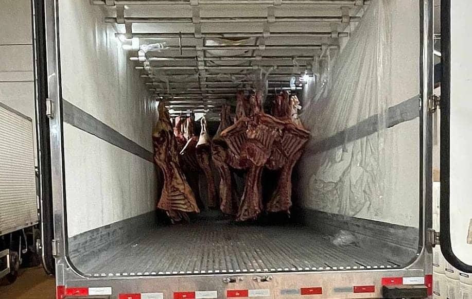 Criminosos furtam caminhão carregado de carne e roubam parte da carga