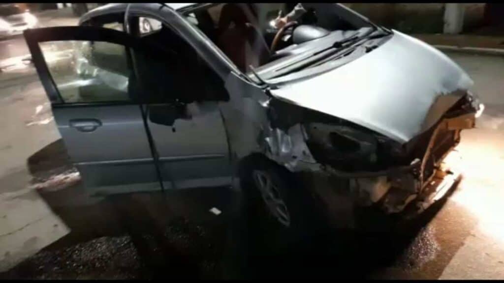 O veículo envolvido no acidente é um Honda/Fit de cor prata e placas MZV-7048, que ficou totalmente destruído após a batida. O impacto foi tamanho que uma das rodas do carro foi arrancada. O para brisas e o para choque também ficaram jogados no meio da rua.