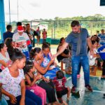 Nesta terça feira(28), ao lado do prefeito Zequinha Lima e da primeira dama Lurdinha Lima, o presidente da Assembléia Legislativa, deputado Nicolau Junior, participou da entrega de presentes para a criançada.