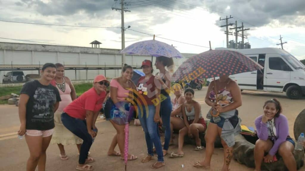 Sem visitas desde a semana passada, esposas de detentos voltaram a fazer manifestação em frente ao Presídio Evaristo de Moraes em Sena Madureira.