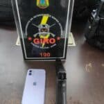 Já no local, a PM encontrou as vítimas do roubo, além de assaltante no chão. Uma motocicleta e um simulacro de arma de fogo também estavam sob a guarda da população.