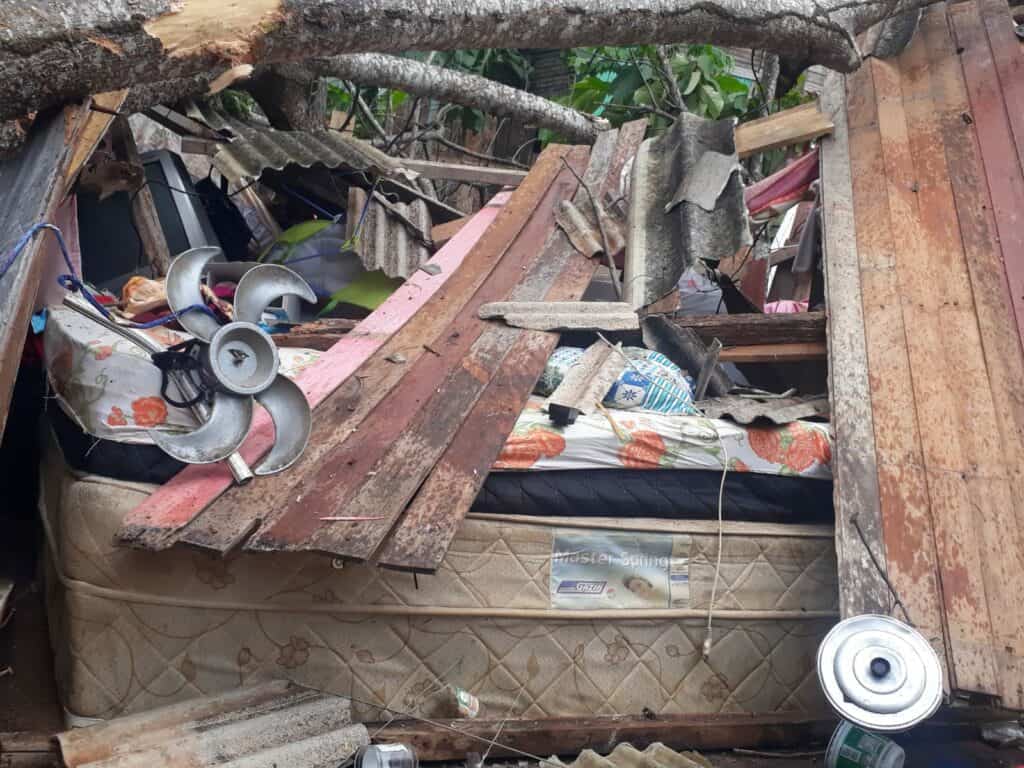 A família da jovem Francisca Luzia de Lima Oliveira, 18 anos, recebeu um grande livramento na última sexta-feira, 21, após a arvore, que ficava ao lado de sua casa, cair e destruir sua residência que fica localizada na rua Rio Grande do Sul, bairro Preventório, próximo ao Educandário Santa Margarida.