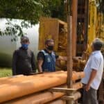 A logística do trabalho de perfuração dos poços conta com um caminhão perfuratriz, equipe técnica especializada, equipamentos e materiais necessários para perfuração, além da regularização e operacionalização do poço.