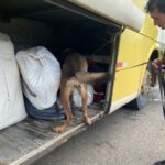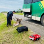 Nas buscas, com auxílio da Cão Policial “Amora”, foram encontradas com umas das passageiras, aproximadamente meio quilo de drogas e um quilo e meio de carne silvestre.