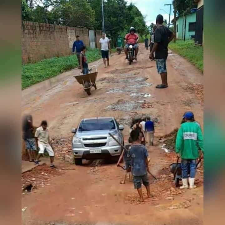 Moradores do Ramal Tucumã se reúnem e compram concretos para taparem buracos