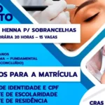 • Modelagem e Henna para sobrancelhas (vagas manhã e tarde) – 20h. Inscrições no CRAS Sobral e Santa Helena;