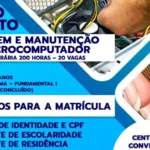 • Montagem e manutenção de microcomputador – 200h / 20 vagas. Inscrição no Centro de Convivência para Pessoa Idosa Cosme Moraes;