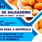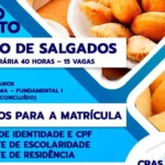 • Técnica de salgadeiro – 40h / 20 vagas Inscrição no CRAS Sobral;