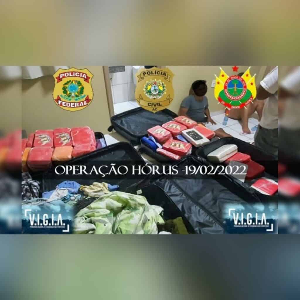 Após diligências investigativas em cumprimento à operação Hórus, programa V.I.G.I.A, na data de 19/02/2022, uma ação integrada entre as polícias prendeu homem com drogas dentro de malas de viagem em quarto de hotel de Cruzeiro do Sul.