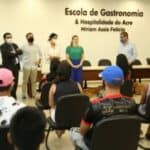 Durante o encontro que ocorreu na Escola de Gastronomia e Hospitalidade Mirian Assis Felício, as autoridades conversaram com crianças e adolescentes assistidos pelo Programa, que, atentamente, ouviram os relatos de vida por eles revelados.