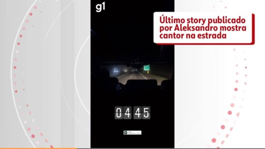 O cantor Aleksandro, da dupla com Conrado, postou um vídeo que mostra o ônibus da dupla na estrada, às 4h45. O conteúdo foi publicado horas antes do veículo se envolver em um acidente que causou seis mortes, incluindo a de Aleksandro. As identidades das outras cinco pessoas não foram divulgadas.
