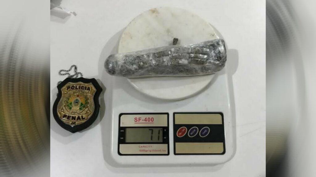 De acordo com a equipe de plantão, durante a passagem da visitante pelo aparelho de scanner corporal, a policial penal que operava o sistema observou um volume incomum na região das partes íntimas da mulher.