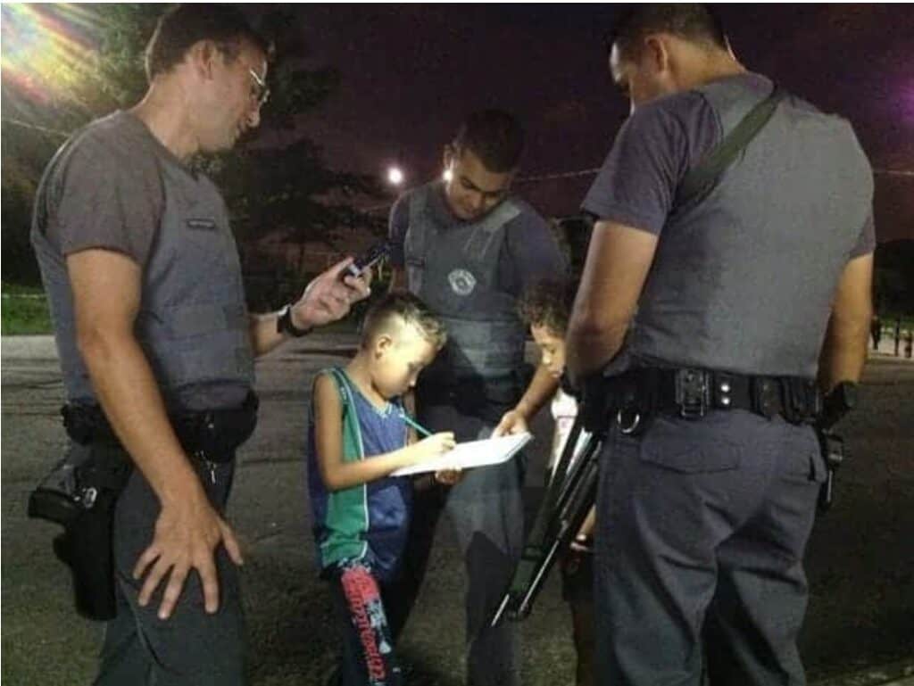 Assim que se encontraram com o menino, os policiais entenderam qual era o grande problema. A criança abriu o caderno e disse o seguinte: “Como vocês são capazes de solucionar todos os problemas, peço que me ajudem a resolver essa tarefa da escola”.