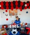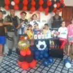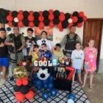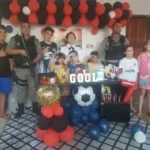 A felicidade estampada no rosto do aniversariante que teve mesa de aniversário com as cores do seu time de coração, o Flamengo, não poderia ser melhor para Samuel.