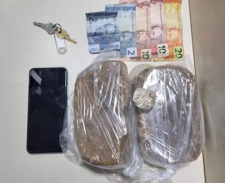 Os militares receberam denúncia anônima dando conta que um indivíduo supostamente teria saído de casa para transportar entorpecentes para outro endereço. Com base nas informações e características do homem os militares fizeram patrulhamento e encontraram um suspeito, foi realizada a abordagem e busca pessoal, sendo encontrado 2, 057 quilogramas de substância aparentando ser oxidado de cocaína e pequena quantia em dinheiro.