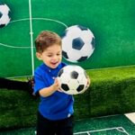 A mesa principal, onde estava o bolo temático de quatro andares, tinha ao fundo um painel personalizado. Na imagem, Leo aparece jogando bola como se estivesse em um campo de futebol. O bolo decorativo não poderia ser diferente, quatro andares enfeitados com bolas e bonecos de jogadores.