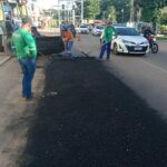 A equipe do Deracre continua com o trabalho nos trechos mais críticos, onde recebem os serviços de reestruturação da camada asfáltica, que possibilita mais segurança aos condutores dessa estrada, que interliga as cidades de Rio Branco e Senador Guiomard.