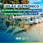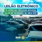 Os próximos ocorrerão nas datas 9 e 13 de fevereiro, com vendas de 15 lotes de veículos sucatas e cinco lotes de materiais diversos, como informática, mobiliários, eletrônicos, médicos hospitalares e refrigeração. Todos os leilões terão início a partir das 8h com encerramento às 13h e serão realizados por meio do link https://leiloes.ac.gov.br/gplg/leiloes.