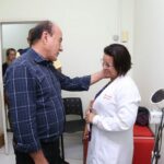 A primeira visita da tarde foi na Unidade Básica de Saúde (UBS) Antenor Francisco Ramos, no bairro 6 de Agosto. De acordo com a coordenadora, Raimunda Antônia da Silva, a Unidade dispõe de clinico geral, enfermeiro, atendimentos de pré-natal, preventivo, consultas de puerpério, acompanhamento do desenvolvimento das crianças, vacinas, curativos, medicação, e atendimentos odontológicos, que é um diferencial.