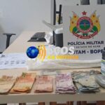 Com ele, foram apreendidas porções de maconha e cocaína, dinheiro, balança de precisão e uma quantia de R$ 828 em espécie. A ação contou com auxílio da ROTAM da Polícia Militar.