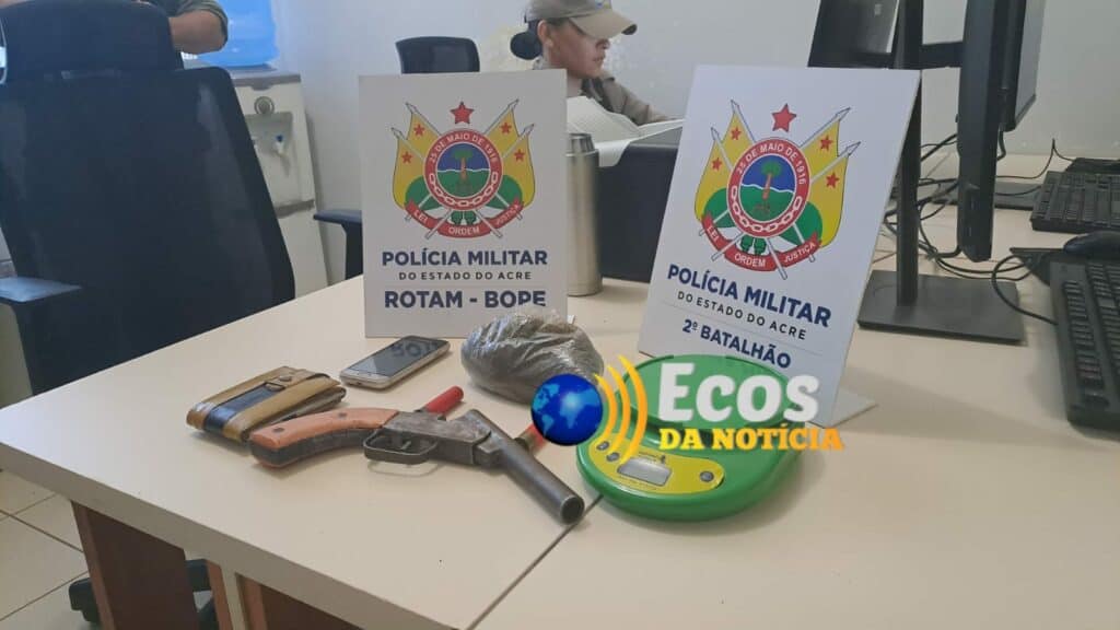 Durante patrulhamento de rotina na noite dessa quarta-feira, 17, no bairro Cidade do Povo, em Rio Branco, uma guarnição da Polícia Militar foi informada por moradores de que na quadra 13 alguns homens estariam armados e comercializando entorpecentes.