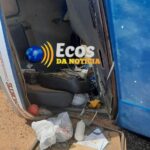 Segundo informações de populares, o motorista trafegava sentido bairro-centro, levando na carroceria três pilares de galpão de concreto. Pelo excesso de peso na carroceria, saiu da pista e colidiu o caminhão na lateral de um veículo da Energisa que estava estacionado às margens da BR.