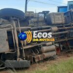 Caminhão tomba na pista, acerta veículo e deixa motorista ferido