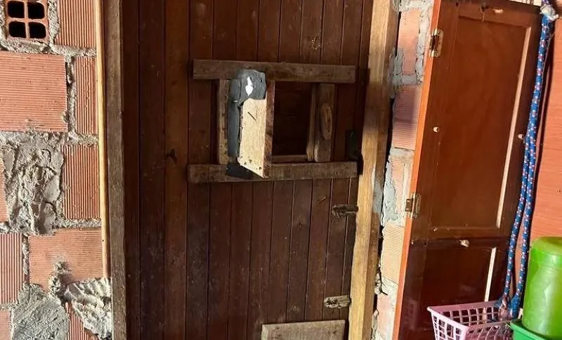 Chegando ao local, os policiais encontraram a vítima aos gritos em uma sala fechada, sem ventilação. Na porta, havia somente uma abertura para a passagem de alimentos.