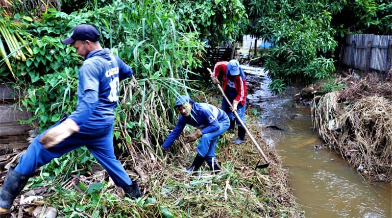 A equipe da Secretaria de Cuidados com a Cidade (SMCCI) recolheu lixo acumulado, mas muitos ficaram represados ainda por conta da enxurrada no mês de março.