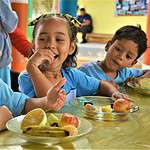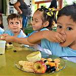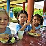Em seguida foi servida a merenda com muitas frutas e outros alimentos saudáveis. Na sala de aula, os alunos puderam assistir a uma palestra sobre nutrição.