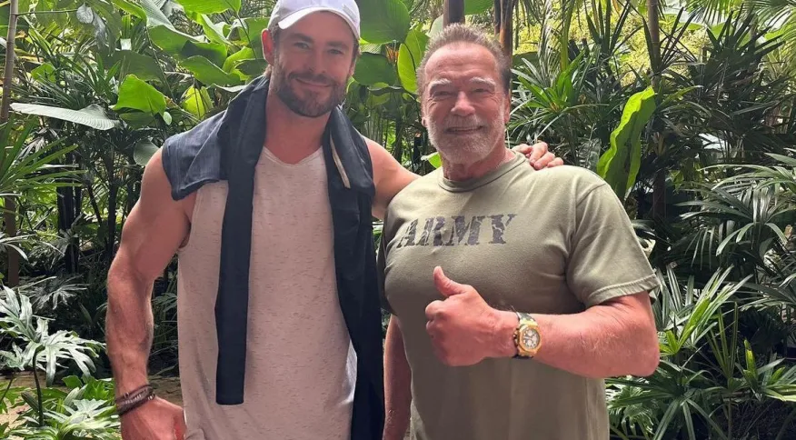Thor x Terminator: Chris Hemsworth encontra Arnold Schwarzenegger em academia em SP