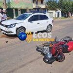 Carro invade contramão e colide em motociclista na Antônio da Rocha Viana