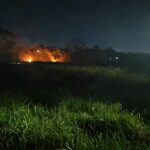 As chamas tomaram conta da região. Segundo informações do Sargento Ruanderson, o incêndio tem características criminosas e teve início por volta das 19h30, quando o Corpo de Bombeiros recebeu chamado da população.