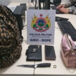 Os militares se deslocavam na Avenida Sobral, quando encontraram os dois indivíduos na moto, trafegando no sentido contrário da via em alta velocidade. Durante a abordagem, a equipe localizou com os homens uma faca e uma mochila feminina.