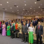 Abrindo a solenidade, o presidente em exercício da instituição, Desembargador Laudivon Nogueira, deu como aclamado Júnior Alberto como novo presidente do órgão eleitoral do Acre pelo biênio 2023/2025 – que, em seguida, fez o tradicional juramento do termo de posse.