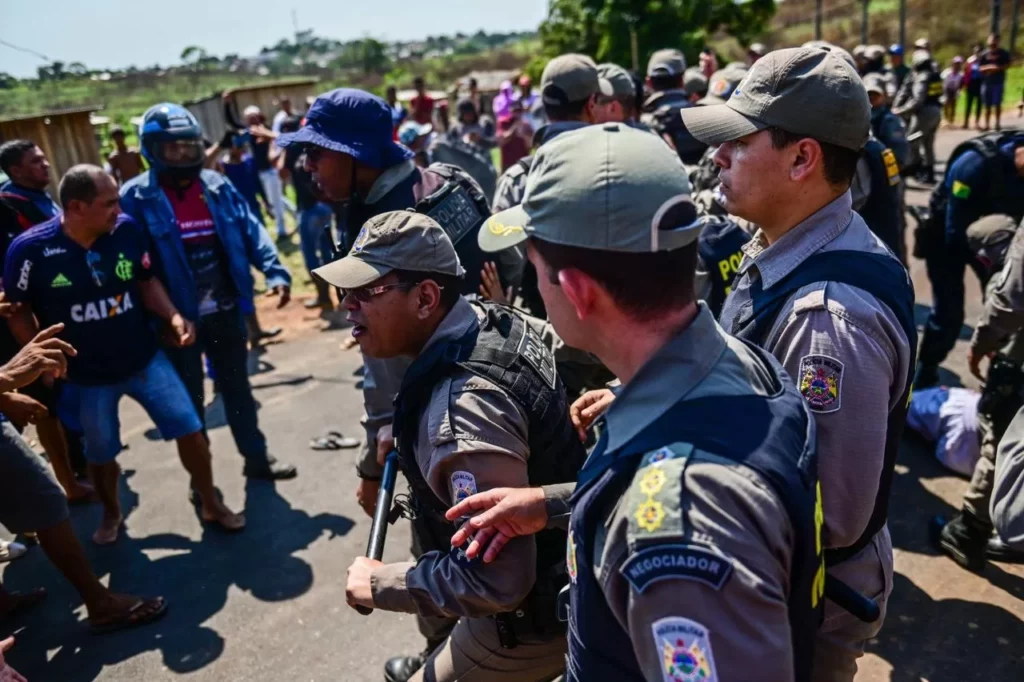 Antes do confronto, moradores fizeram um cordão, de braços unidos, na tentativa de impedir o acesso de tratores que já realizam a derrubada das casas. Houve confronto com a polícia e ao menos três foram presos Crianças foram atingidas com bombas de efeito moral.