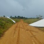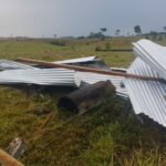 Peças com telhas presas foram lançados no pasto de uma fazenda, outras maiores caíram no meio do ramal.