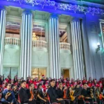 Alunos da Escola de Música do Acre (Emac) participaram na noite desta sexta-feira (1º) da abertura da programação natalina de 2023. Eles realizaram a Cantata de Natal em frente ao Palácio Rio Branco diante de centenas de pessoas que prestigiaram o momento.