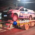 A caminhonete e a viatura da PM foram removidos por um guincho.