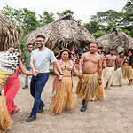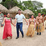 Ao chegar à aldeia, ele foi recepcionado pelas lideranças, com cantos e dança e foi seguido até o centro da festividade. O governador destacou que estava emocionado.