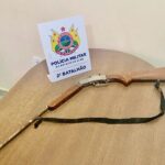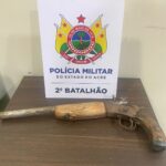 A guarnição do 2° Batalhão apreendeu também de uma espingarda calibre 36 adaptada para 22, no bairro Jacarandá, também na região do 2° distrito.