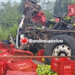 O motorista de um caminhão carregado de tangerina morreu na hora após o veículo atingir violentamente a traseira de outro caminhão.