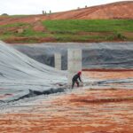 É importante destacar que a célula é feita próxima ao lixão que foi remediado, ou seja, que recebeu cobertura de argila e grama, selado com manta impermeável para proteger a pilha da água de chuva e onde pode ocorrer a captação de chorume e gás para a proteção do lençol freático.