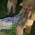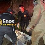 A Polícia Militar foi acionada e quando chegaram ao local encontraram o corpo em estado de decomposição com as mãos amarradas. O corpo de Bombeiros também esteve no local e ajudou no regaste do corpo.