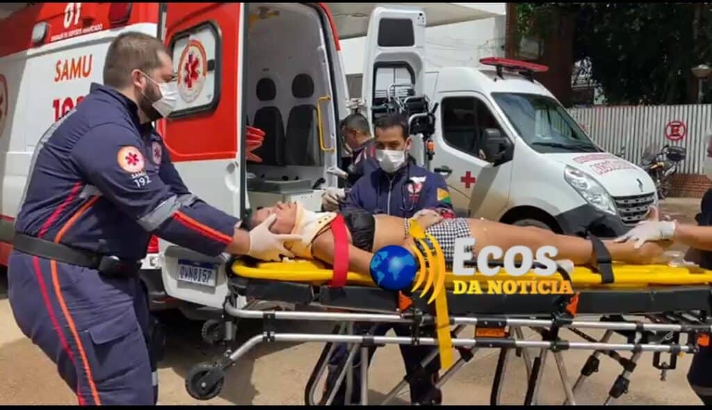 Na moto, além do condutor, havia uma passageira de garupa identificada como Paula Clarice Moreira Souza, também de 23 anos. Paula foi arremessada e sofreu ferimentos graves na cabeça ao cair no chão.