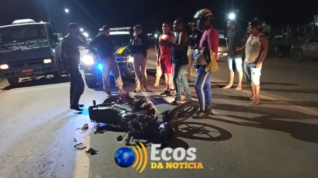 Uma colisão entre uma moto e um caminhão boiadeiro deixou o motociclista Anderson da Silva Conceição, de 30 anos, com fratura e laceração em sua mão na noite deste sábado, 16, na Via Verde na frente da Geba material de construção no Segundo Distrito de Rio Branco.