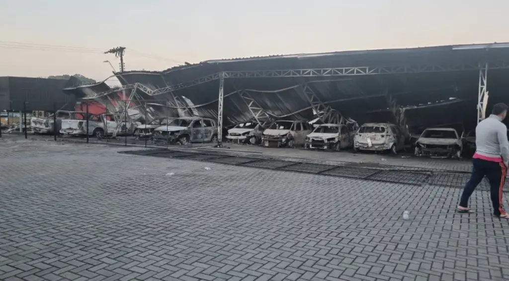 Uma loja de carros foi incendiada na madrugada desta quinta-feira (28), na cidade de Joinville, nas proximidades do bairro Floresta, em Santa Catarina.