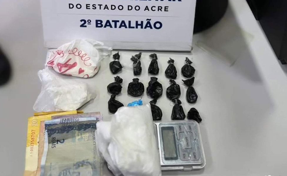 Com eles foram encontrados cocaína, balança de precisão, dinheiro (oriundo do tráfico) e aparelhos celulares.