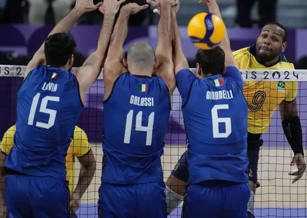 A seleção brasileira masculina de vôlei tropeçou diante da campeã mundial Itália na estreia da fase de grupos da Olimpíada de Paris na manha deste sábado (27), na Arena Paris Sul. O Brasil chegou a ter vantagem nos dois primeiros sets, mas oscilou em momentos decisivos, principalmente com erros no saque e bloqueio, e acabou superado por 3 sets a 1 (parciais de 23/25, 25/27, 25/18 e 21/25), na partida do Grupo B.