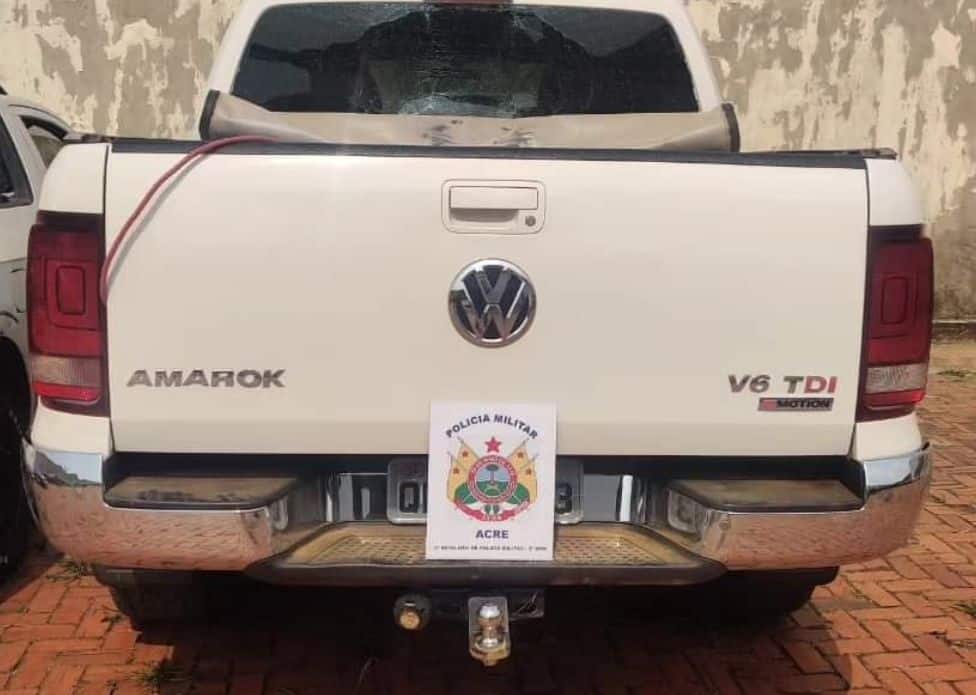 Uma caminhonete VW/Amarok de cor branca foi recuperada pela Polícia Militar na manhã deste domingo, 28. A operação de recuperação ocorreu no ramal Bom Jesus, no bairro Vila Acre.